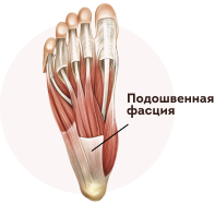 Подошвенной фасцией называют жесткую сухожильную пластинку, которая прикрепляется к пяточной кости и головкам плюсневых костей, создавая своеобразный защитный чехол для подошвенной поверхности стопы. Она помогает поддержанию формы ступни и свода стопы. Нормальная анатомия стопы устроена так, чтобы человек при ходьбе не ощущал боли - для этого имеется подошвенный апоневроз, который играет роль амортизатора (мостика) для свода стопы. Подошвенная фасция натянута как тетива между костями и при каждом шаге эта своеобразная тетива натягивается, удерживая свод стопы, не давая костям стопы «разъехаться».