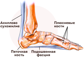 Подошвенной фасцией называют жесткую сухожильную пластинку, которая прикрепляется к пяточной кости и головкам плюсневых костей, создавая своеобразный защитный чехол для подошвенной поверхности стопы. Она помогает поддержанию формы ступни и свода стопы. Нормальная анатомия стопы устроена так, чтобы человек при ходьбе не ощущал боли - для этого имеется подошвенный апоневроз, который играет роль амортизатора (мостика) для свода стопы. Подошвенная фасция натянута как тетива между костями и при каждом шаге эта своеобразная тетива натягивается, удерживая свод стопы, не давая костям стопы «разъехаться».
